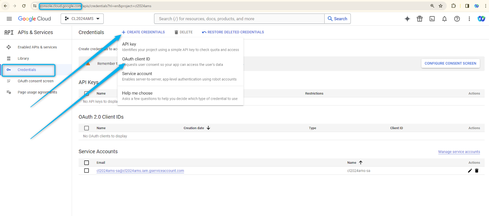 - Click on credentials and create OAuth client ID credentials.