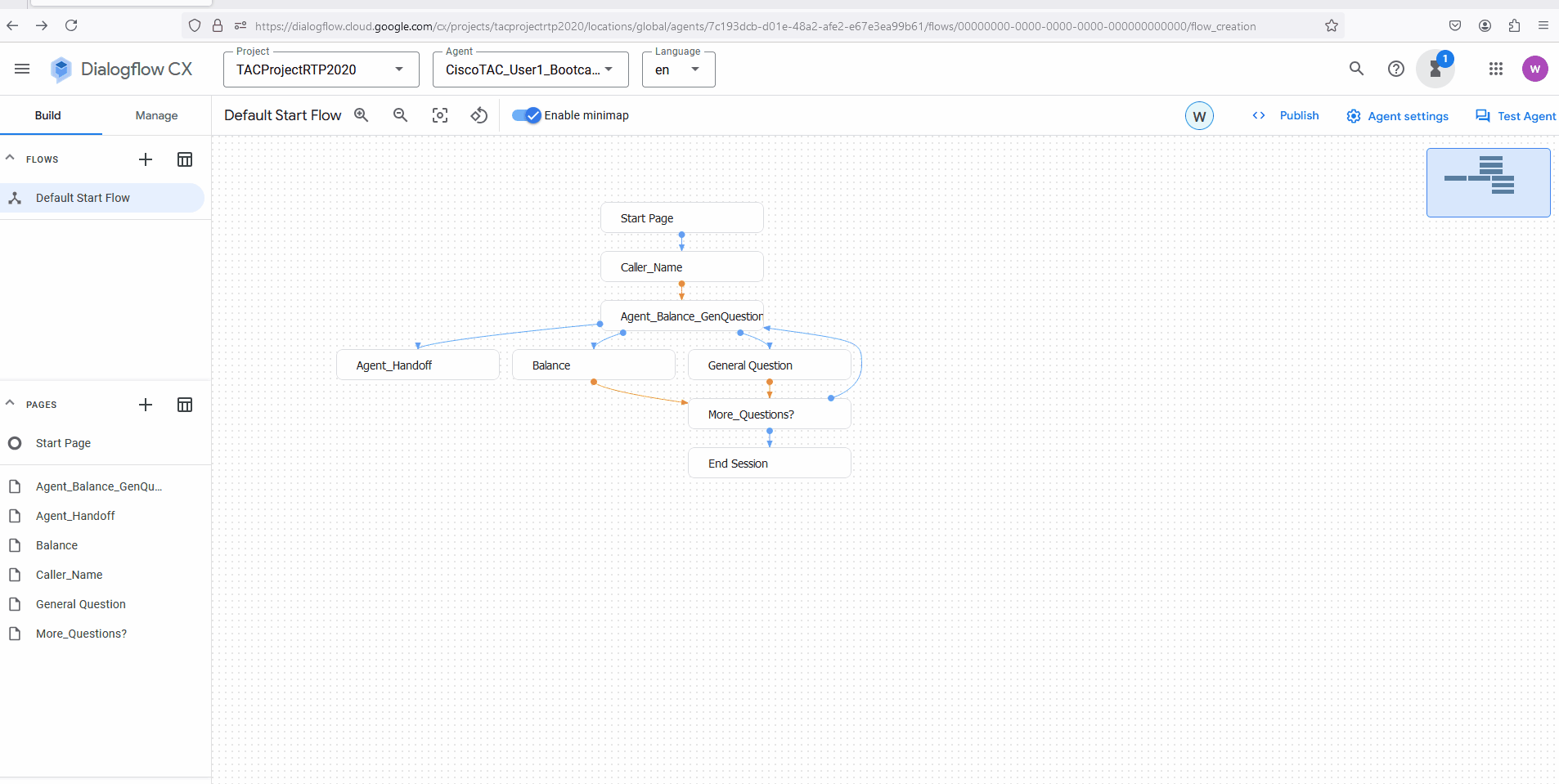 For now, just use the Test Agent option and call the Google number that you configured for this Virtual agent to test the current configurations
